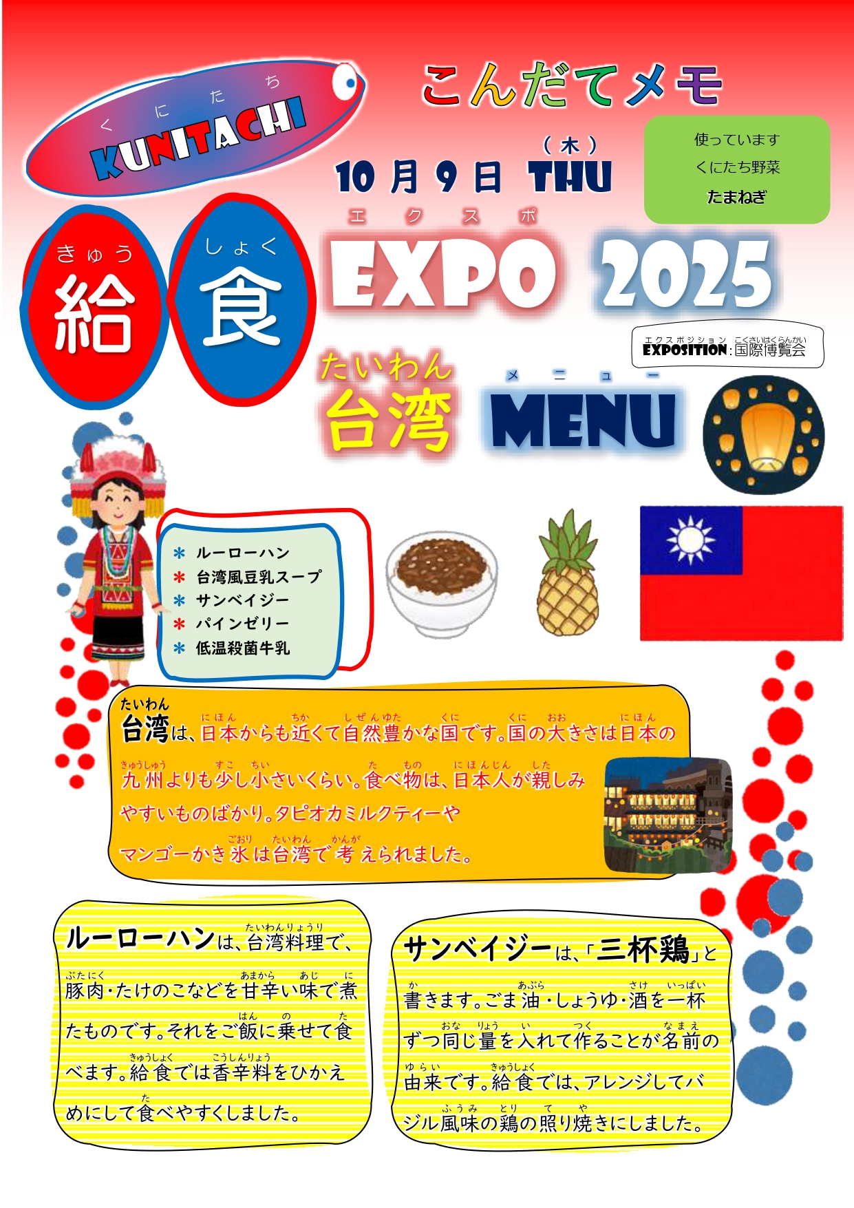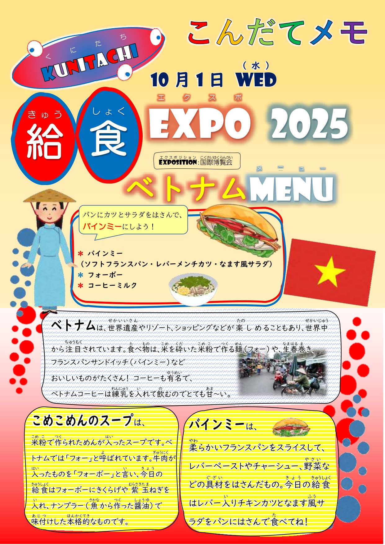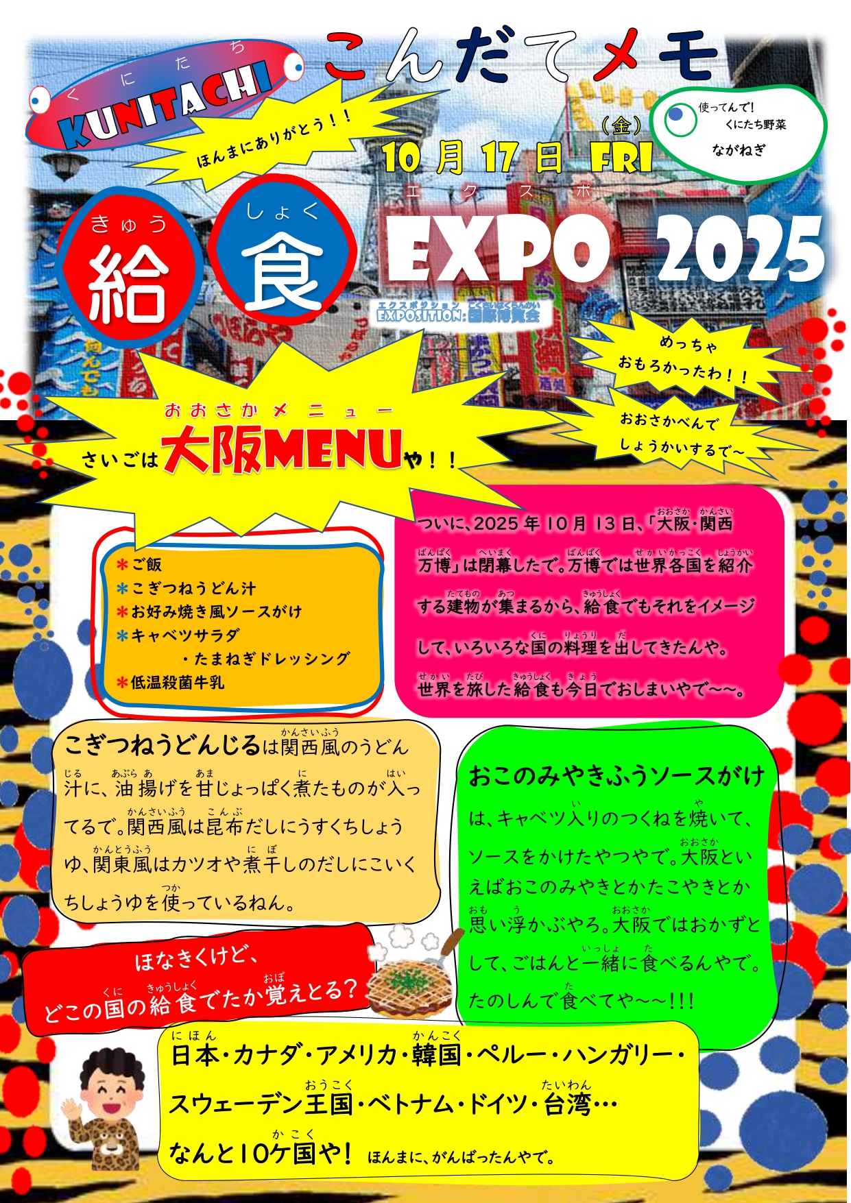 現在開催中の「2025大阪・関西万博」に合わせて、国立市の学校給食では「KUNITACHI給食EXPO2025」を実施しました