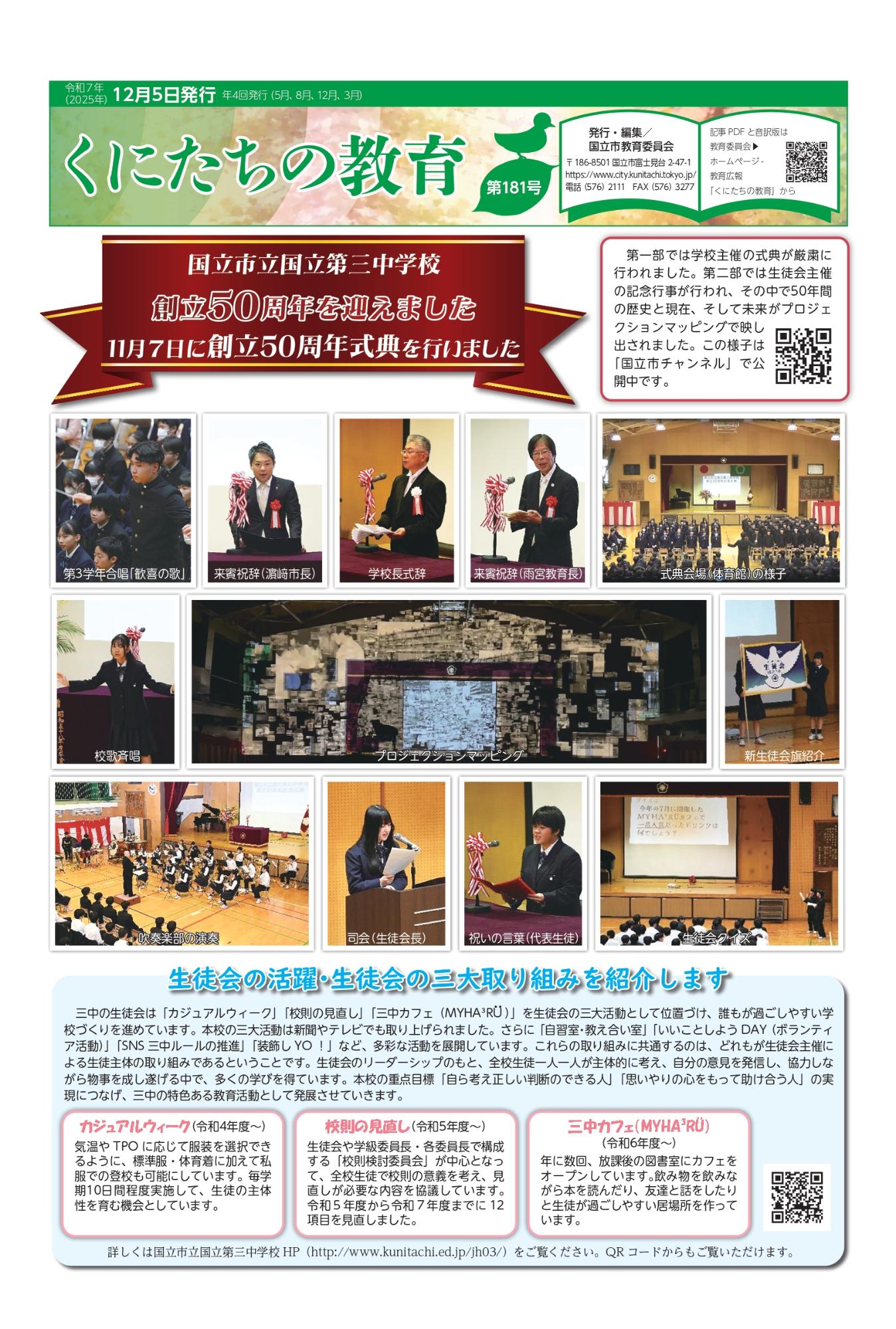1.国立市立国立第三中学校創立50周年を迎えました