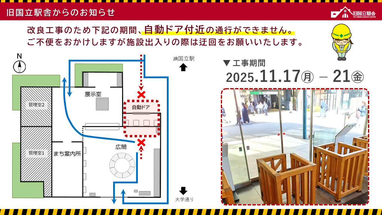 広間北側出入口(自動ドア) の通行制限について (11/17月-21金)