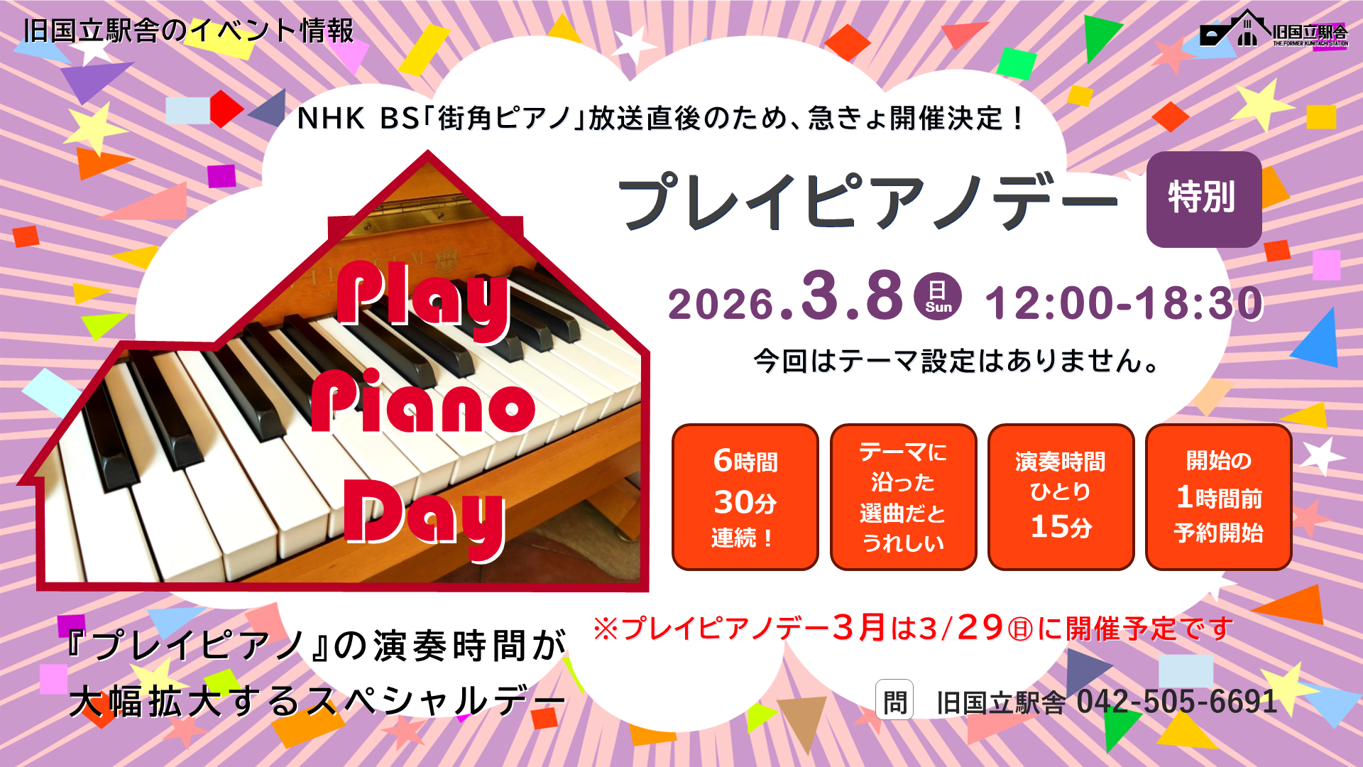 - 「プレイピアノデー3月」は3月29日に別途開催予定です