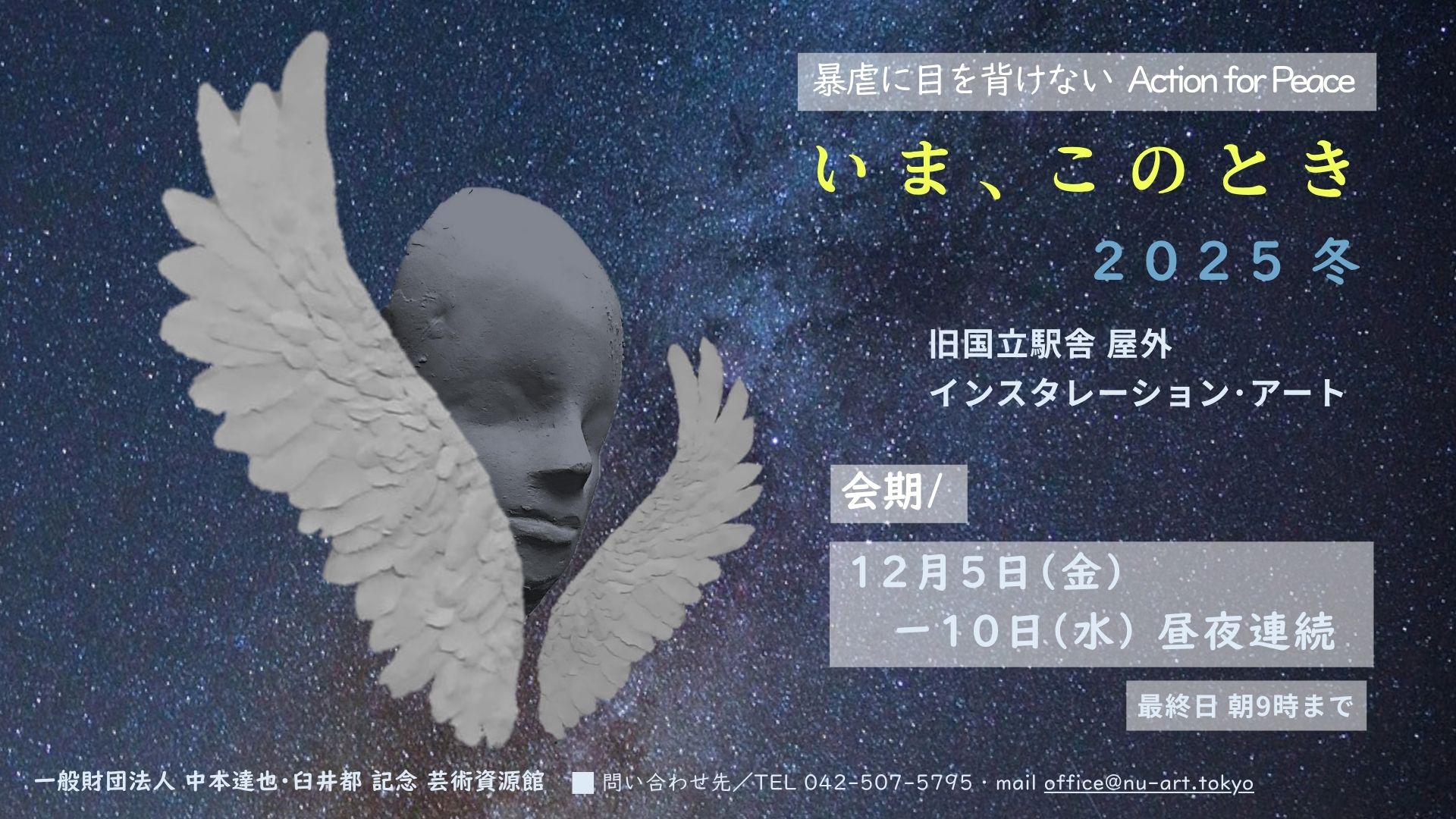 世界の紛争地域で無数の子どもの命が失われているにもかかわらず、世界では対立と分断が広がり理解しあう共感も失われています。芸術資源館では、目を背けてはならない人間性を問う活動として、子どもたちや幅広い世代の人たちが制作したインスタレーション・アート(空間表現美術)を今年6月の企画に続き発表します。さらに、忘却に抗う新たな作品も加えて展示します。