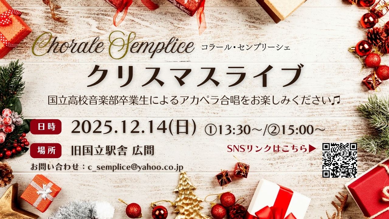 皆さんがきっと一度は耳にしたことのあるクリスマスソングをアカペラコーラスでお届けする合唱ライブを開催します。