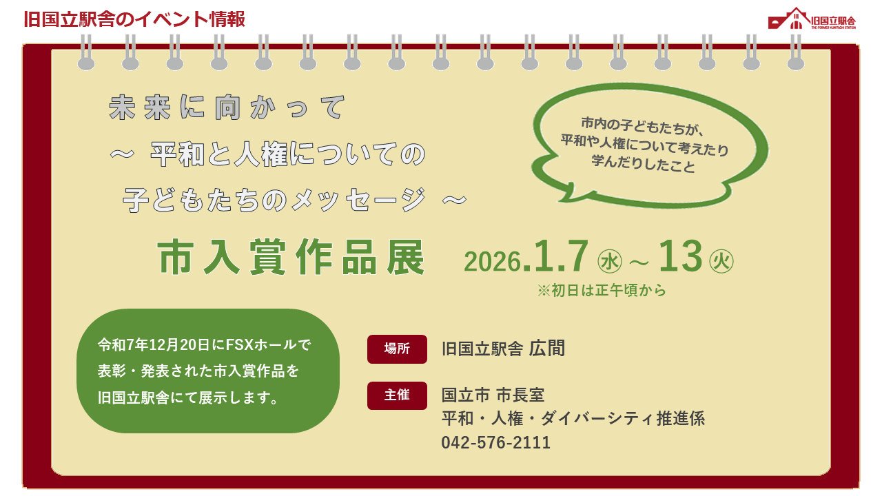 「未来に向かって -平和と人権についての子どもたちのメッセージ-」市入賞作品展示 (2025年度)