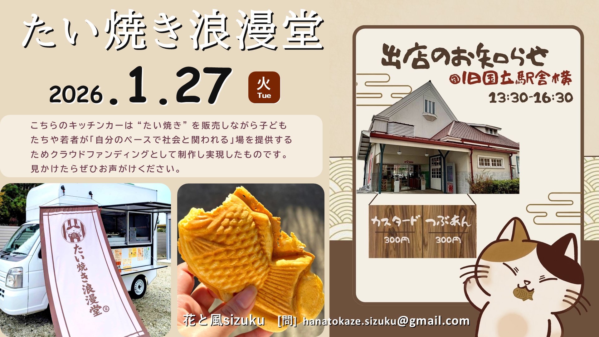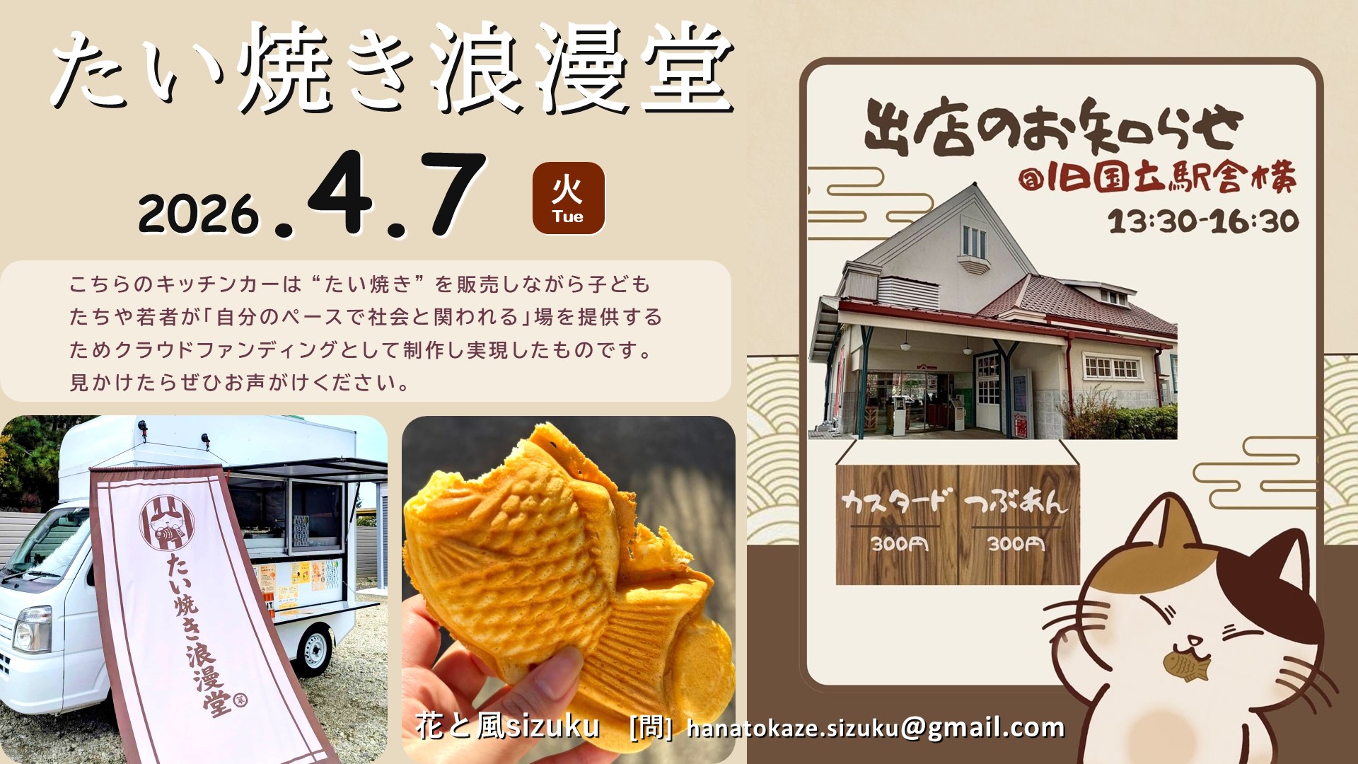 こちらのキッチンカーは“たい焼き”を販売しながら一子どもたちや若者が「自分のペースで社会と関われる」場を提供するためクラウドファンディングとして制作し実現したものです。