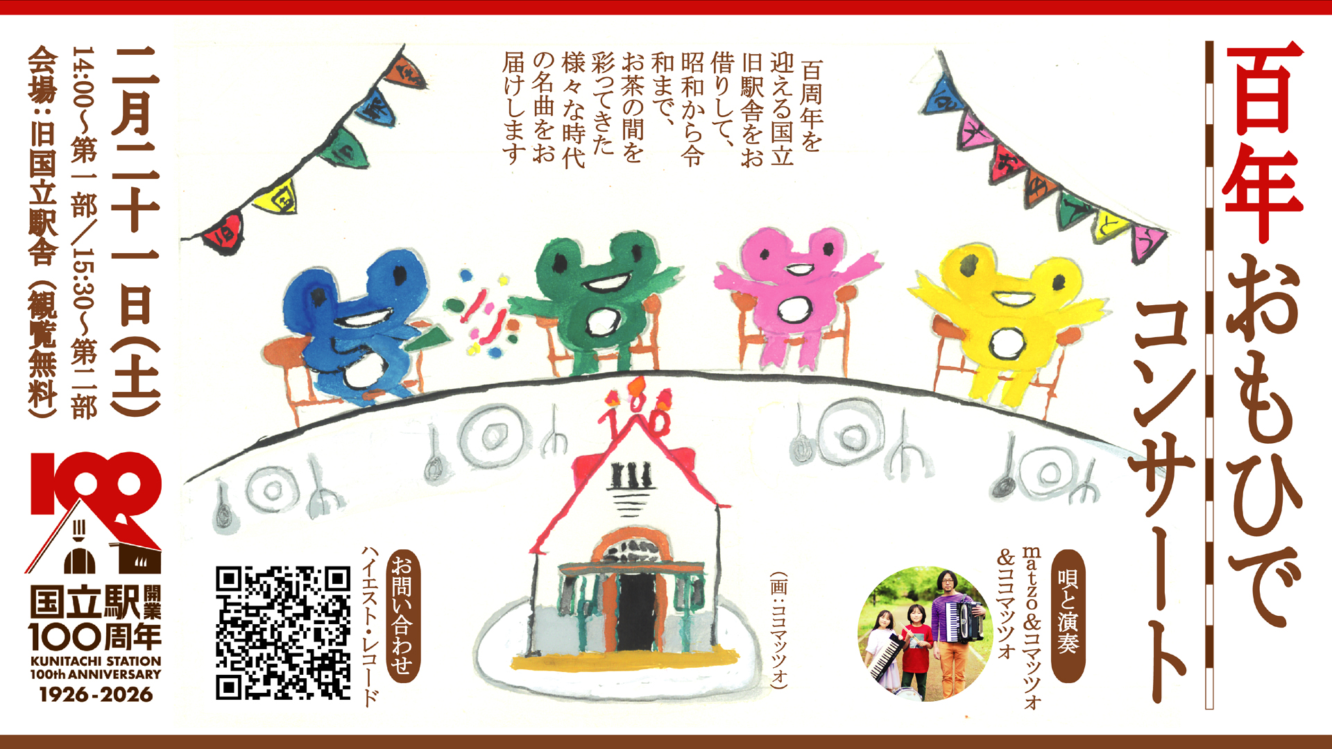 百周年を迎える国立旧駅舎をお借りして、昭和から令和まで、お茶の間を彩ってきた様々な時代の名曲をお届けします