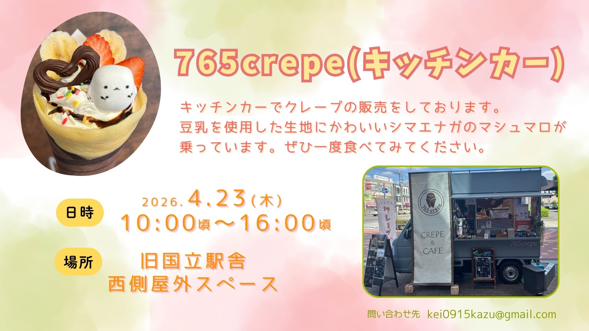 キッチンカーでクレープの販売をしております。