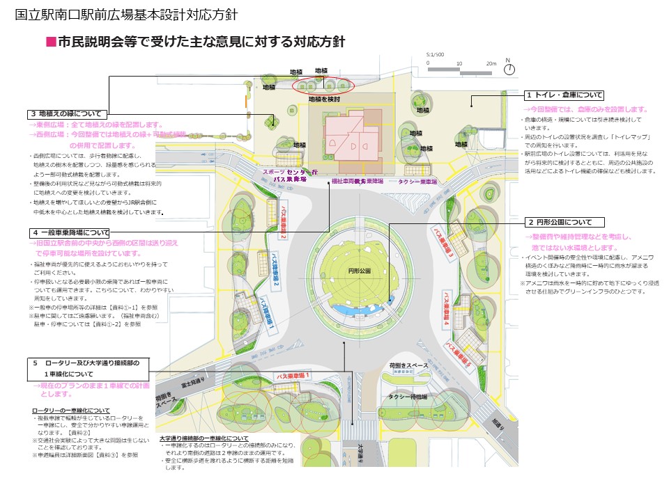 (注)資料詳細については、下記「国立駅南口駅前広場基本設計対応方針」をご参照ください。